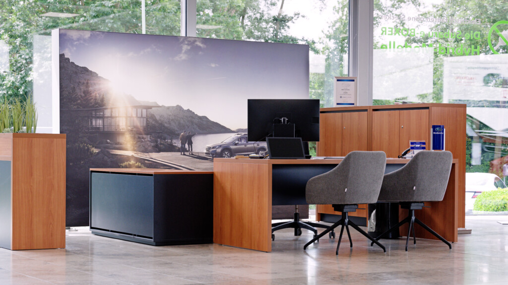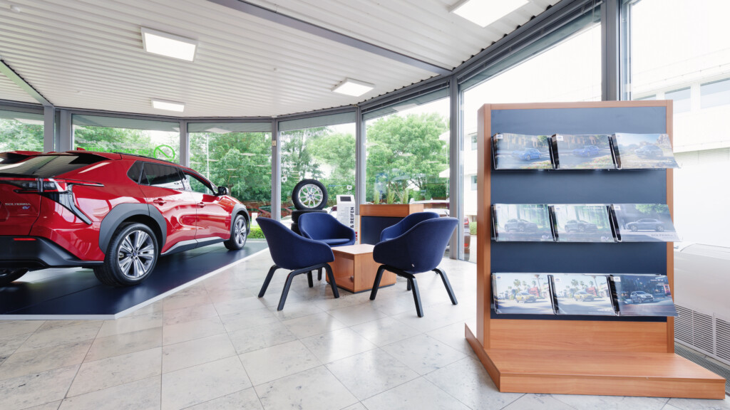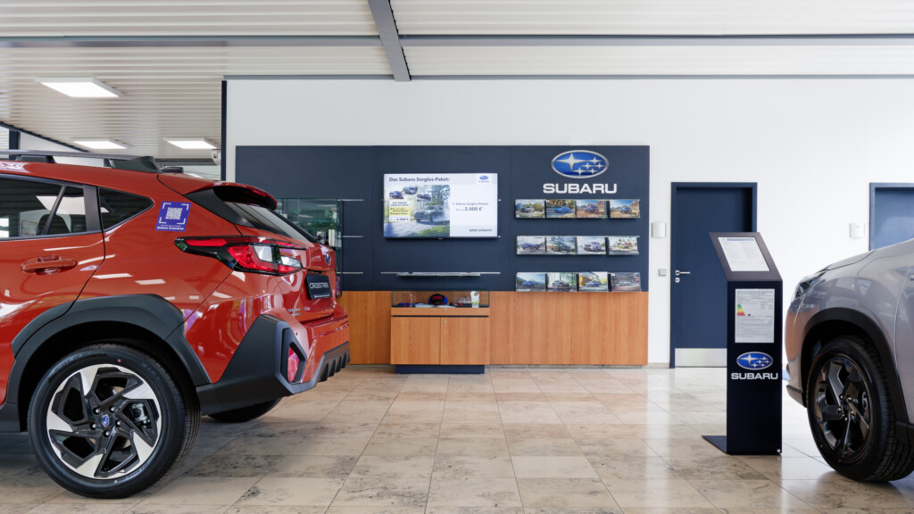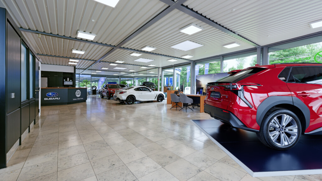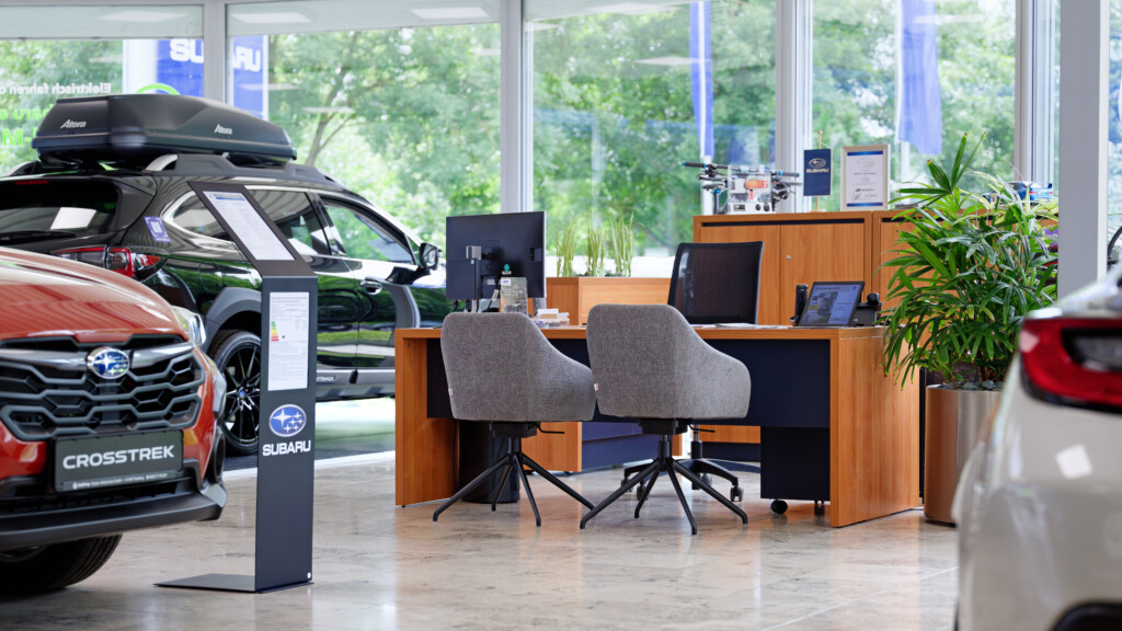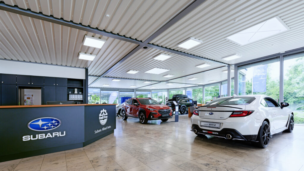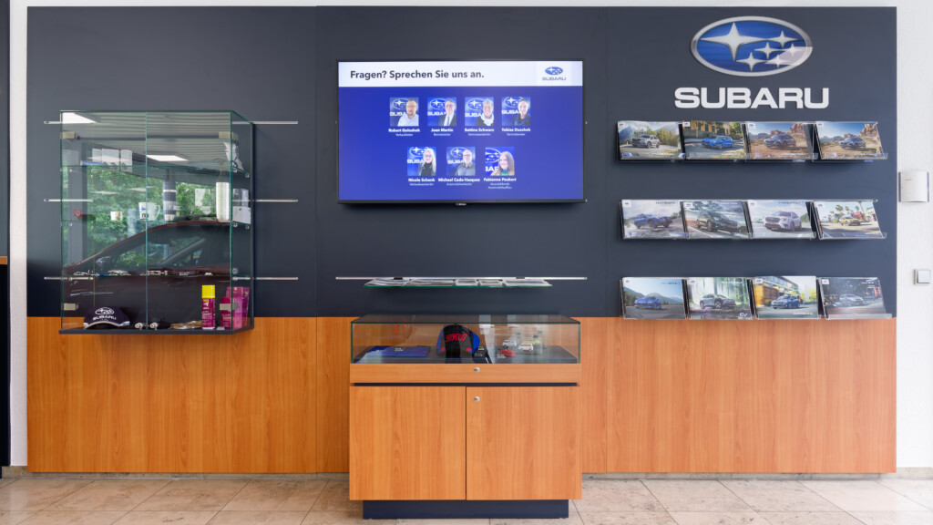 Die Subaru Deutschland Zentrale in Friedberg wurde im Juni 2024 von der mann Objecta GmbH & Co. KG im neuen Corporate Design der Marke gestaltet. Die Ladeneinrichtung verbindet ästhetische Ansprüche mit funktionaler Qualität und schafft eine moderne, einladende Atmosphäre.