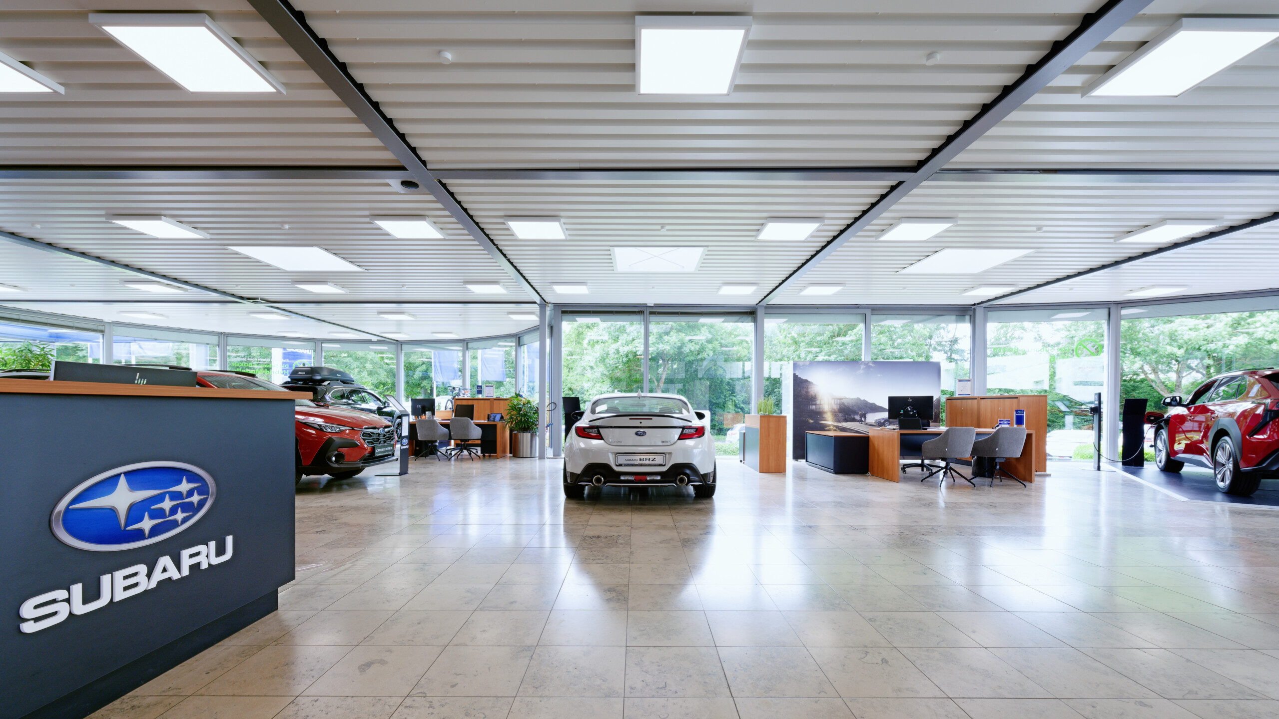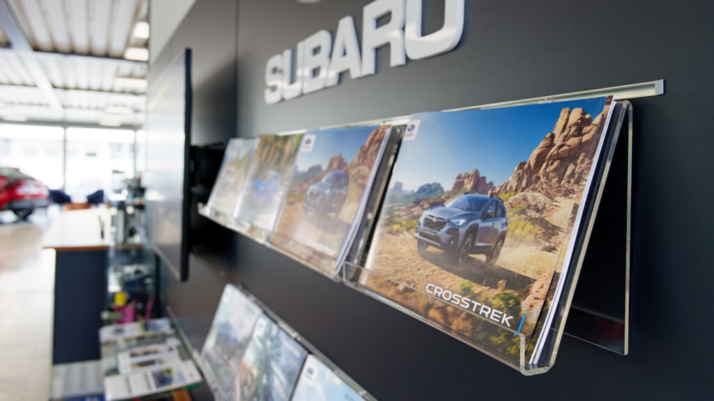 Die Subaru Deutschland Zentrale in Friedberg wurde im Juni 2024 von der mann Objecta GmbH & Co. KG im neuen Corporate Design der Marke gestaltet. Die Ladeneinrichtung verbindet ästhetische Ansprüche mit funktionaler Qualität und schafft eine moderne, einladende Atmosphäre.